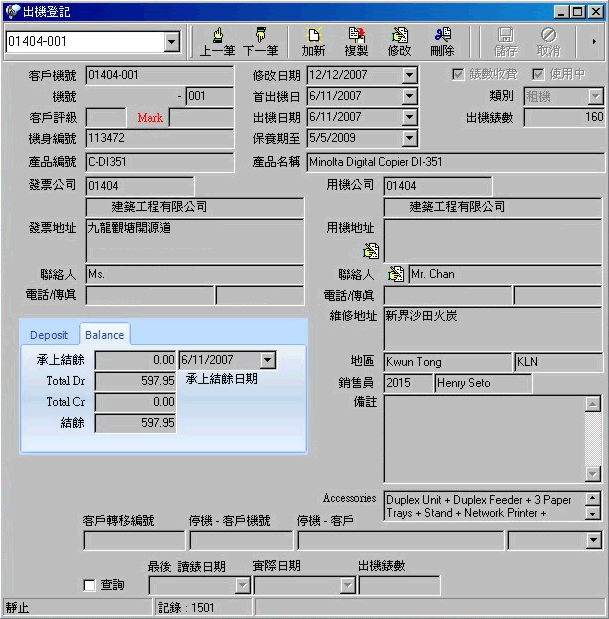 | 影印機租用月費抄錶管理系統 | 案例 1 | ||