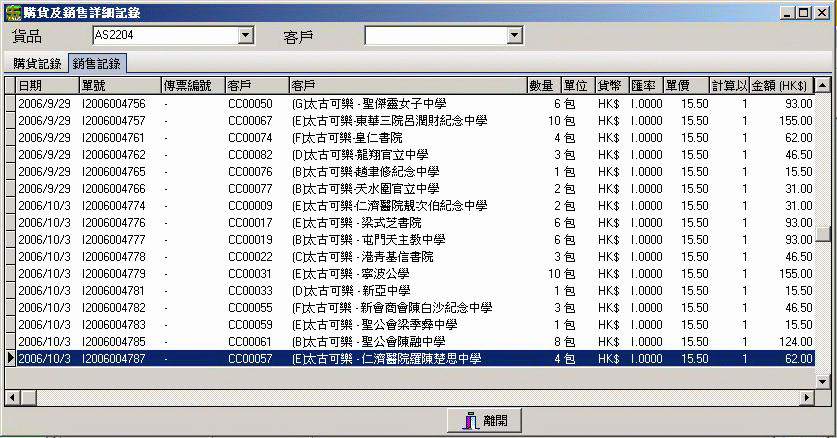 - 交易記錄(可即時查詢各客戶對應各貨品之交易記錄)